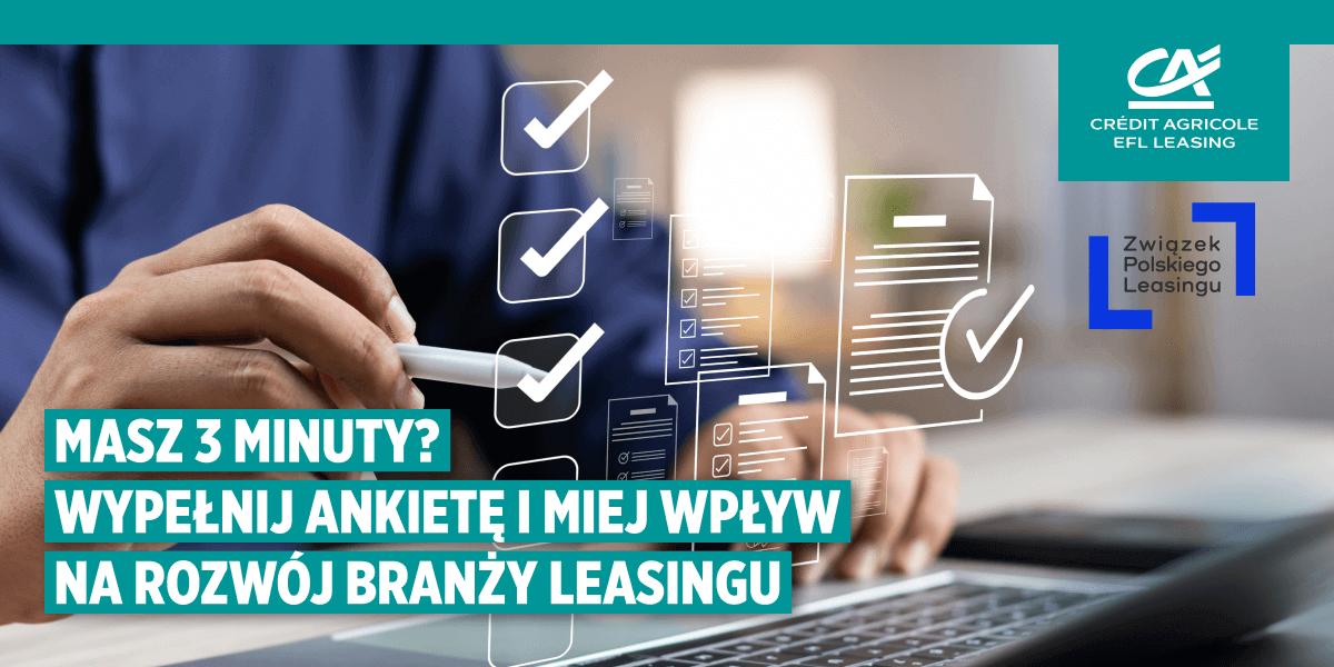 Zapraszamy przedsiębiorców do udziału w ankiecie realizowanej pod patronatem Związek Polskiego Leasingu. Badanie dotyczy doświadczeń związanych z procesem leasingowym oraz czynników wpływających na jego ocenę.